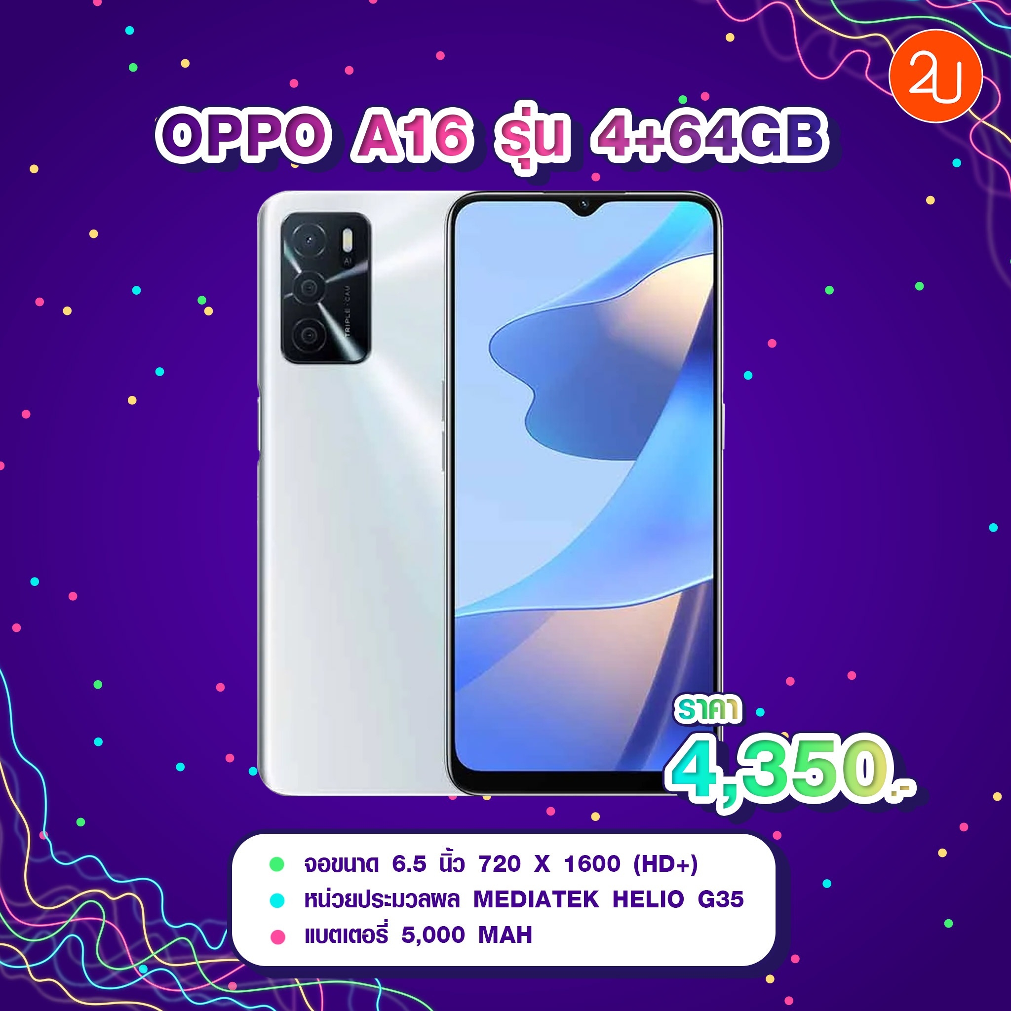 📱 9.OPPO A16 รุ่น 4+64GB