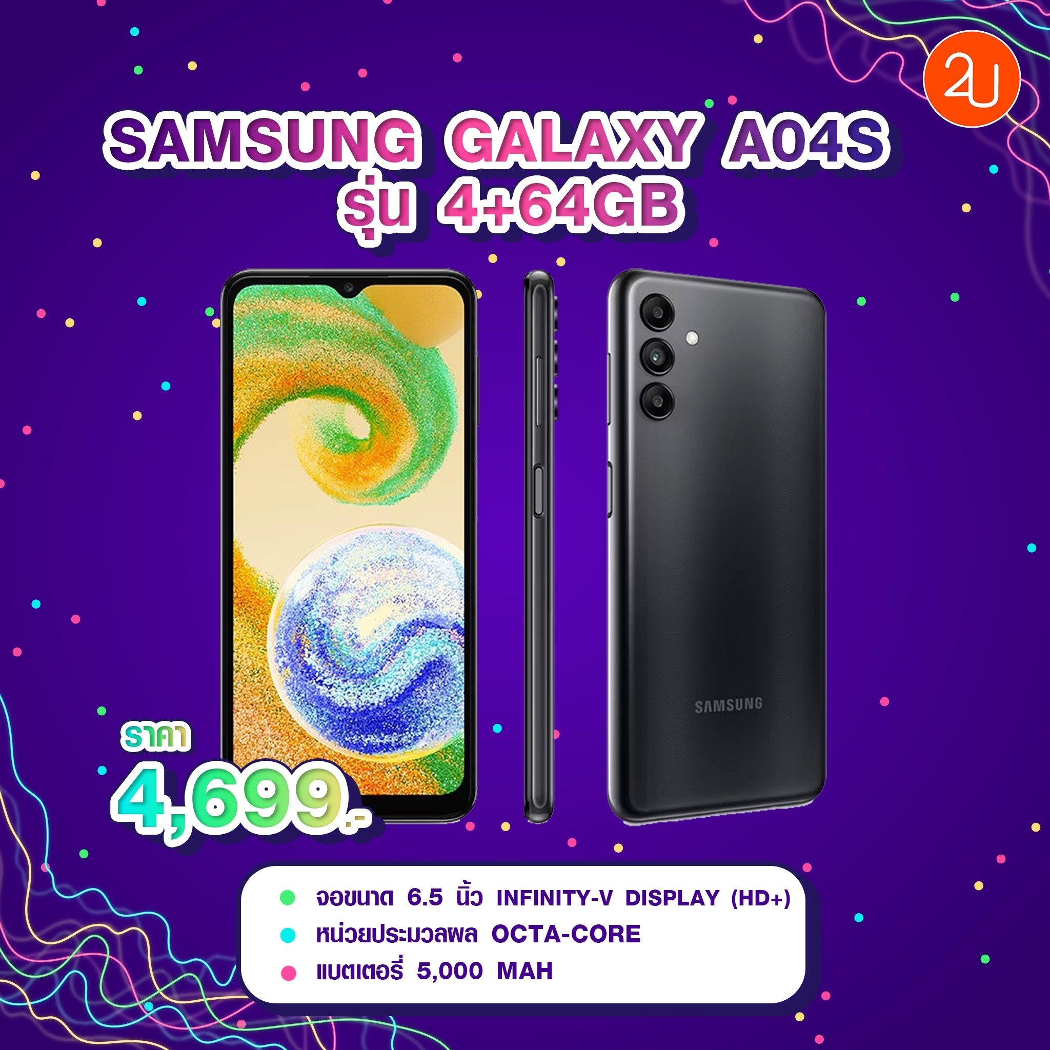 📱 5.SAMSUNG Galaxy A04s รุ่น 4+64GB