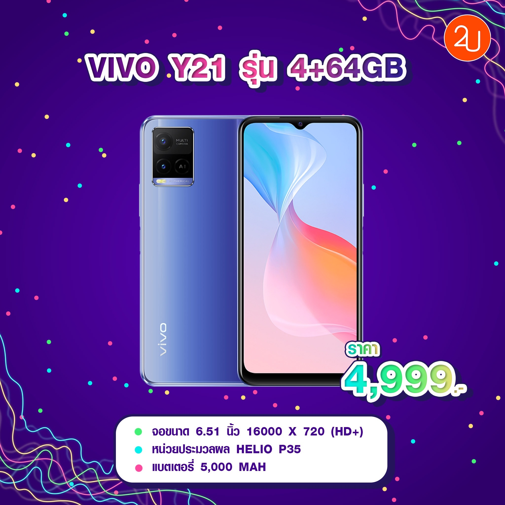 📱 2.vivo Y21 รุ่น 4+64GB