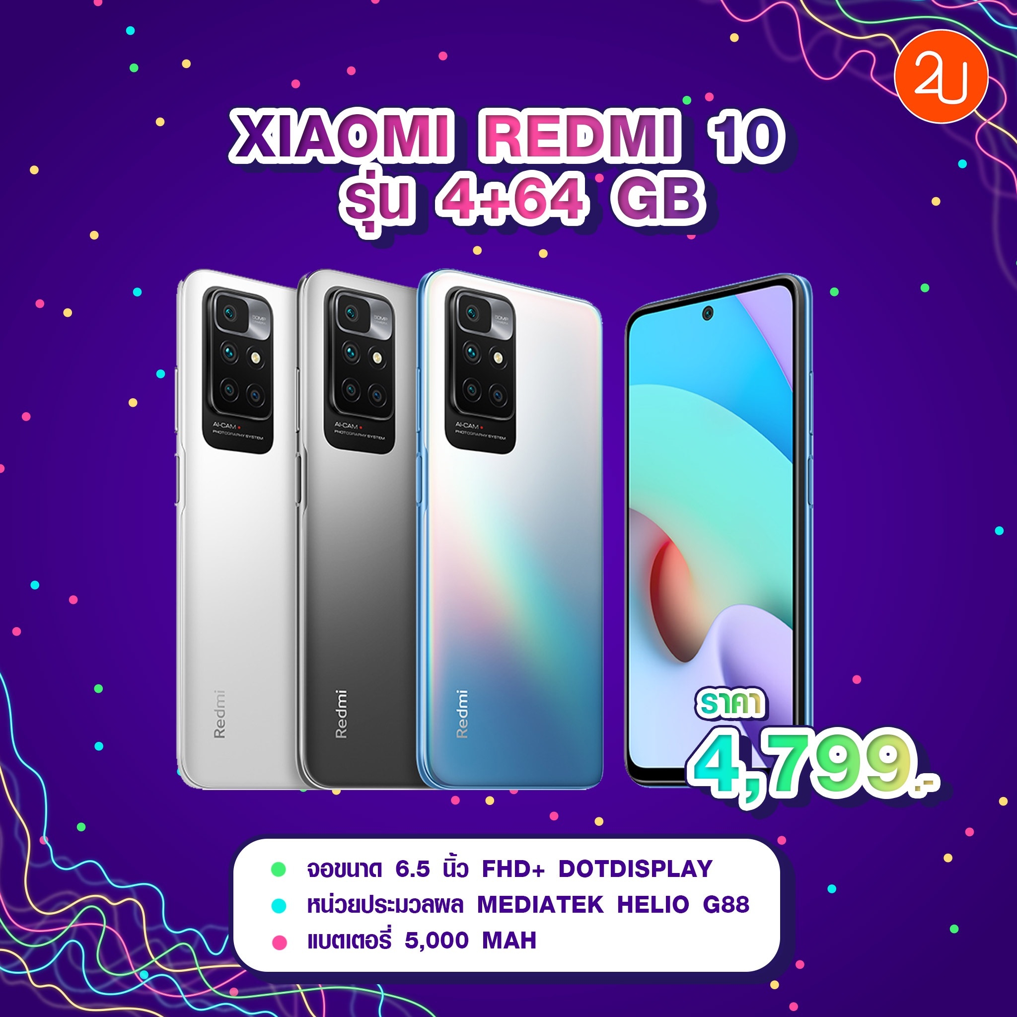 📱 1.Xiaomi Redmi 10 รุ่น 4+64 GB